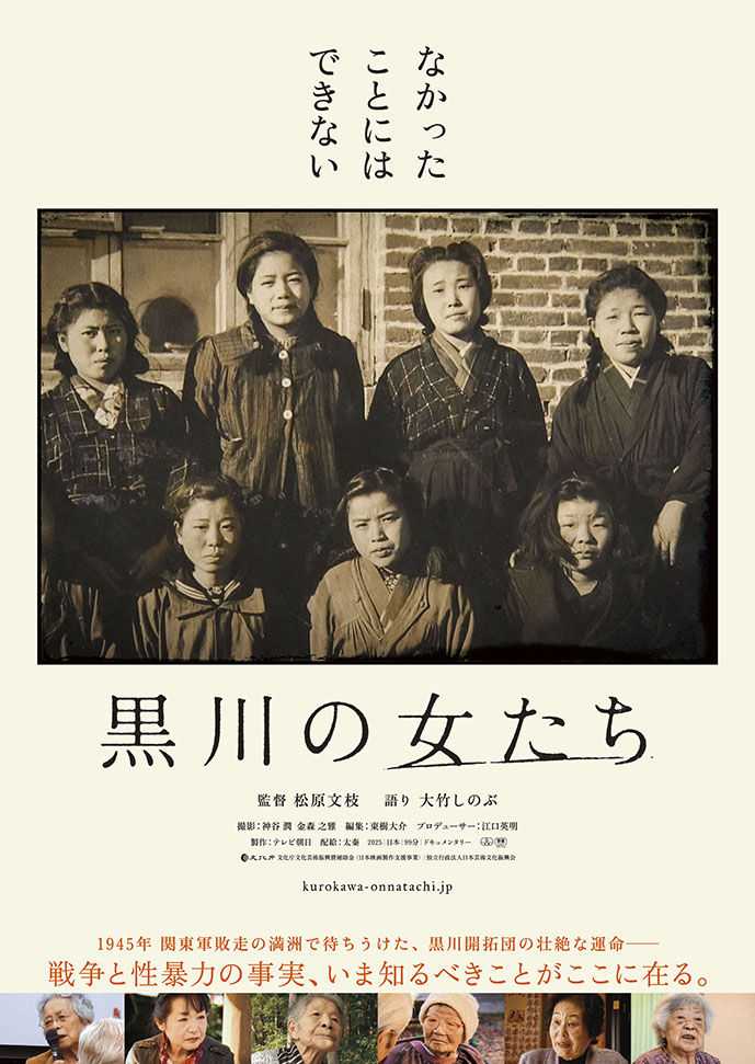 2025年7月12日に封切られた『黒川の女たち』は、戦争と性暴力の実相を描いた作品。開拓団を守るため、ソ連軍に差し出された女性たちが経験することになった壮絶なる苦難の記録は日本中に衝撃を与え、観客動員45,000人以上、興行収入5,000万円を超えるヒット作に。第99回 キネマ旬報ベスト・テン文化映画部門 第2位に輝いたほか、2025年 平和・協同ジャーナリスト基金賞 奨励賞、2025年 女性文化賞を受賞するなど、作品内容も高く評価された。監督はテレビ朝日「ニュースステーション」「報道ステーション」のディレクターを経て、映画『ハマのドン』を手掛けた松原文枝。